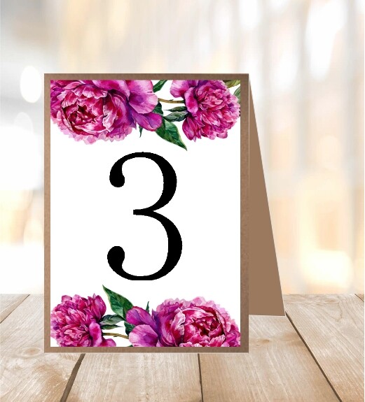 Numery stolików ekologiczne fuksja piwonie AW-SE12