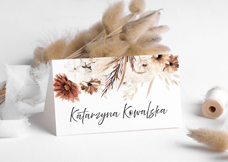 AW-WDS5Winietki ślube z motywem kwiatów rustykalntch. Piękna jesienna kolorystyka - grafika akwarela.