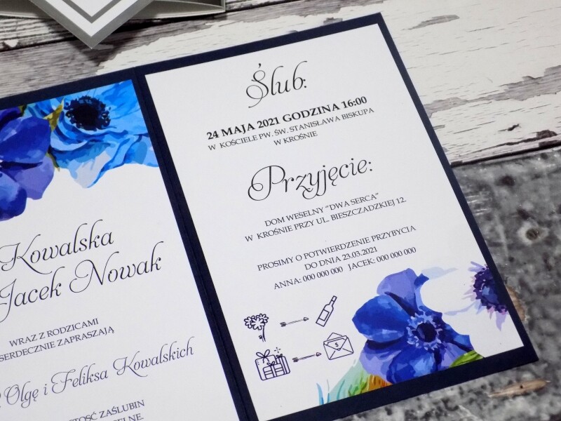 - wymiary zaproszenia po rozłożeniu: 14,9cm x 21cm