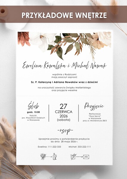 - Wymiary zaproszenia złożonego 10,5 cm x 14,9 cm