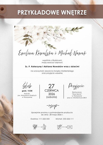 - Wymiary zaproszenia złożonego 10,5 cm x 14,9 cm
