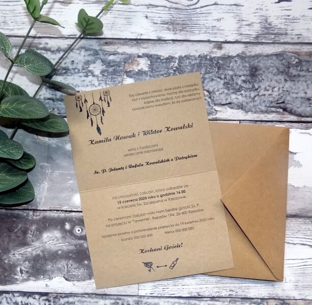 AW-ZEŁZaproszenia ślubne ekologiczne z motywem łapacza snów.